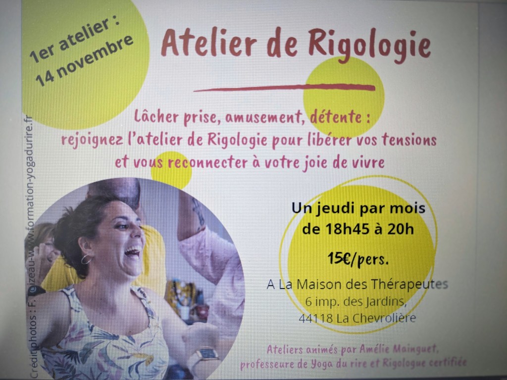 – ATELIER MENSUEL DE RIGOLOGIE animé par Amélie Mainguet-Rigologie et Yoga du rire